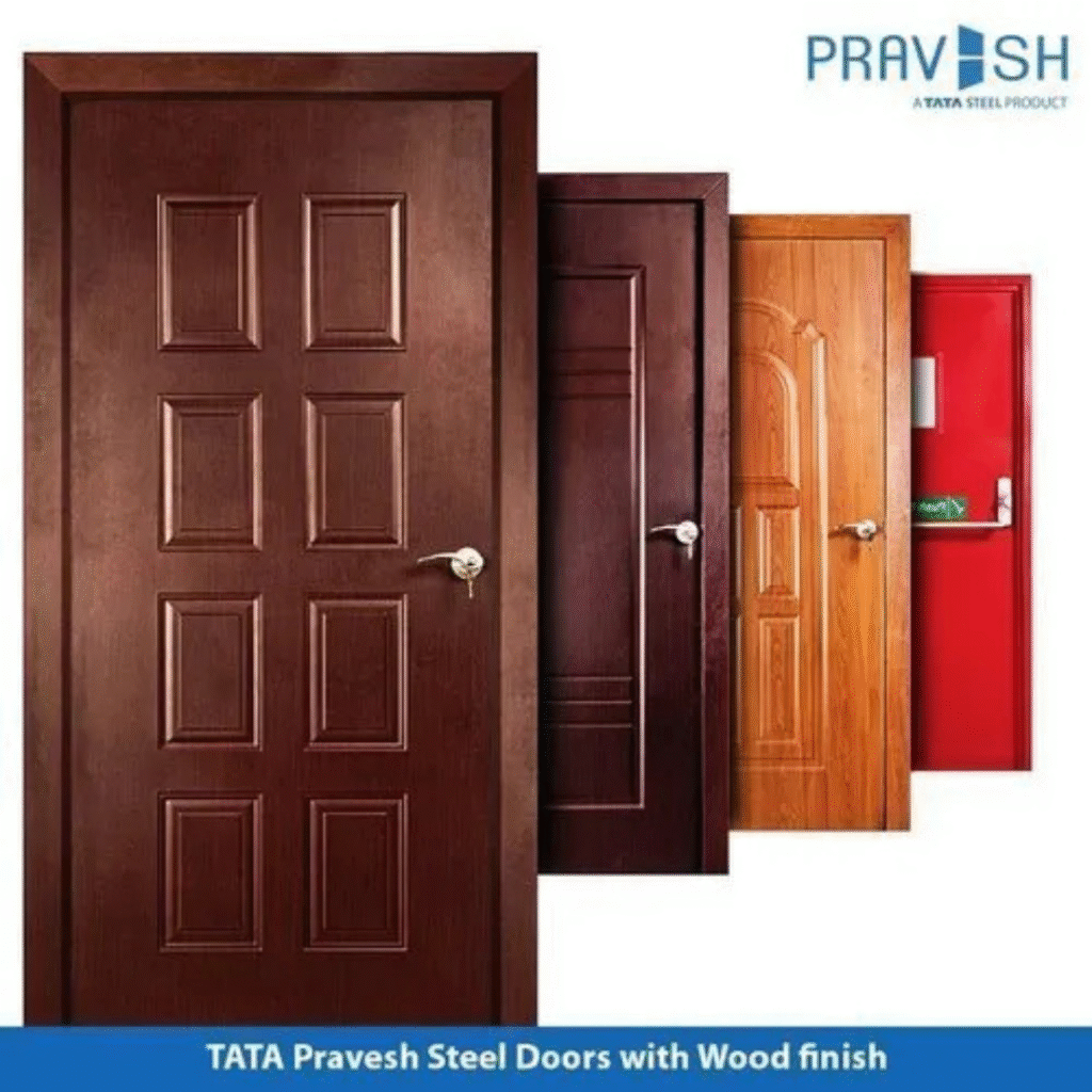 TATA PRAVESH Doors & Windows are premium steel solutions from Tata Steel that combine the strength of steel with the elegant finish of wood. Designed to offer style, durability, and security, these products are ideal for modern Indian homes and commercial spaces. Manufactured using advanced technology, TATA PRAVESH doors and windows are 100% termite-proof, weather-resistant, and require minimal maintenance compared to traditional wooden alternatives. The brand’s commitment to innovation and sustainability ensures every product meets the highest standards of quality and longevity. Available in a wide range of finishes, colors, and designs, TATA PRAVESH products provide both aesthetic appeal and robust protection. With factory-engineered precision and eco-friendly coatings, these doors and windows are built to withstand India’s varying climatic conditions while retaining their beauty for years. Whether for the main entrance, bedroom, bathroom, or balcony, TATA PRAVESH offers a perfect balance of elegance, safety, and durability.